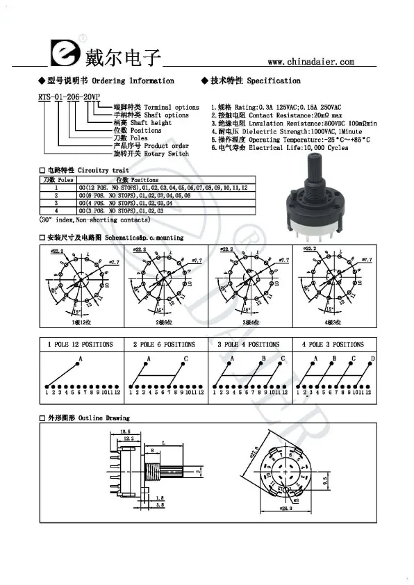 Предмет | 0.3A скорость вентилятора поворотный выключатель с точечной PCB клеммы | ||||