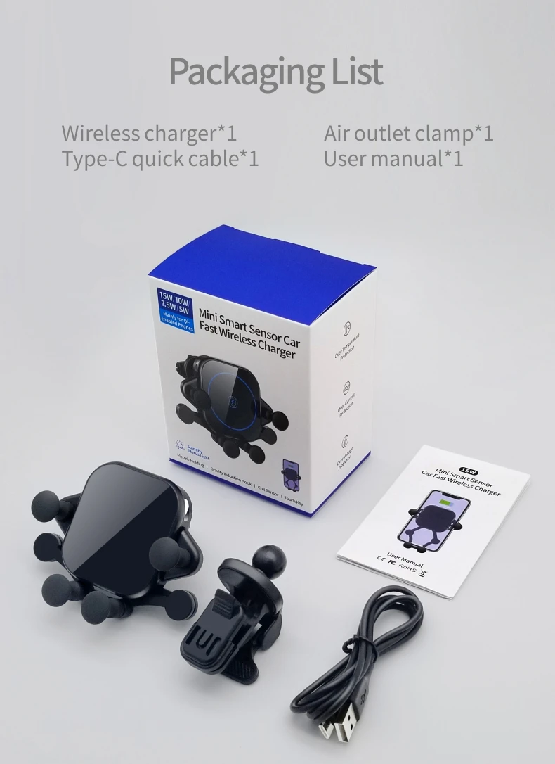Название продукта | Беспроводное Автомобильное зарядное устройство и держатель для телефона |