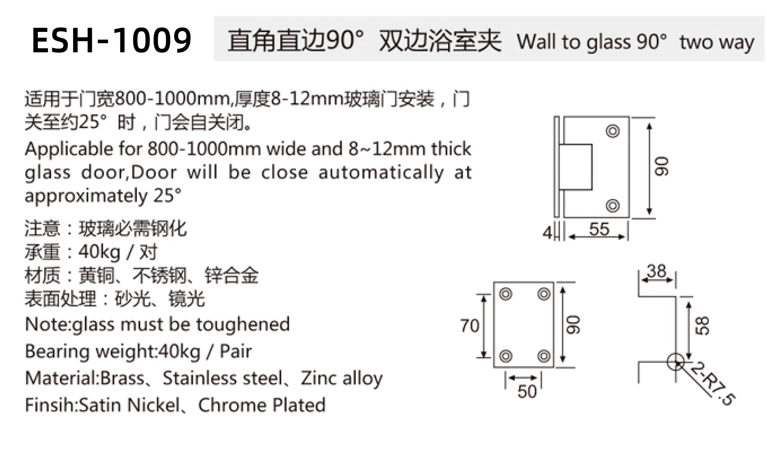 Applicable for door width | 800-1000mm |