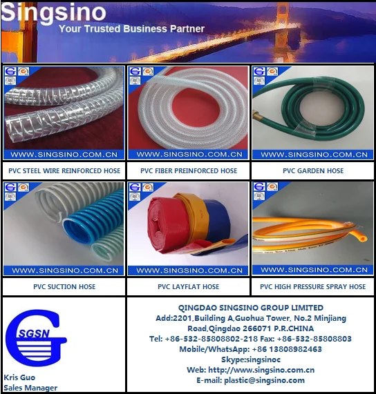 Choosing high strength polyester filament and high quality PVC, it used advanced technology and polyester reinforced layer made by one-step procedure through braided.