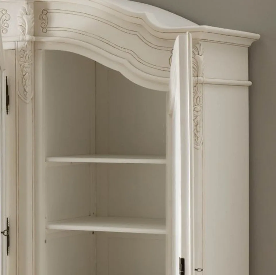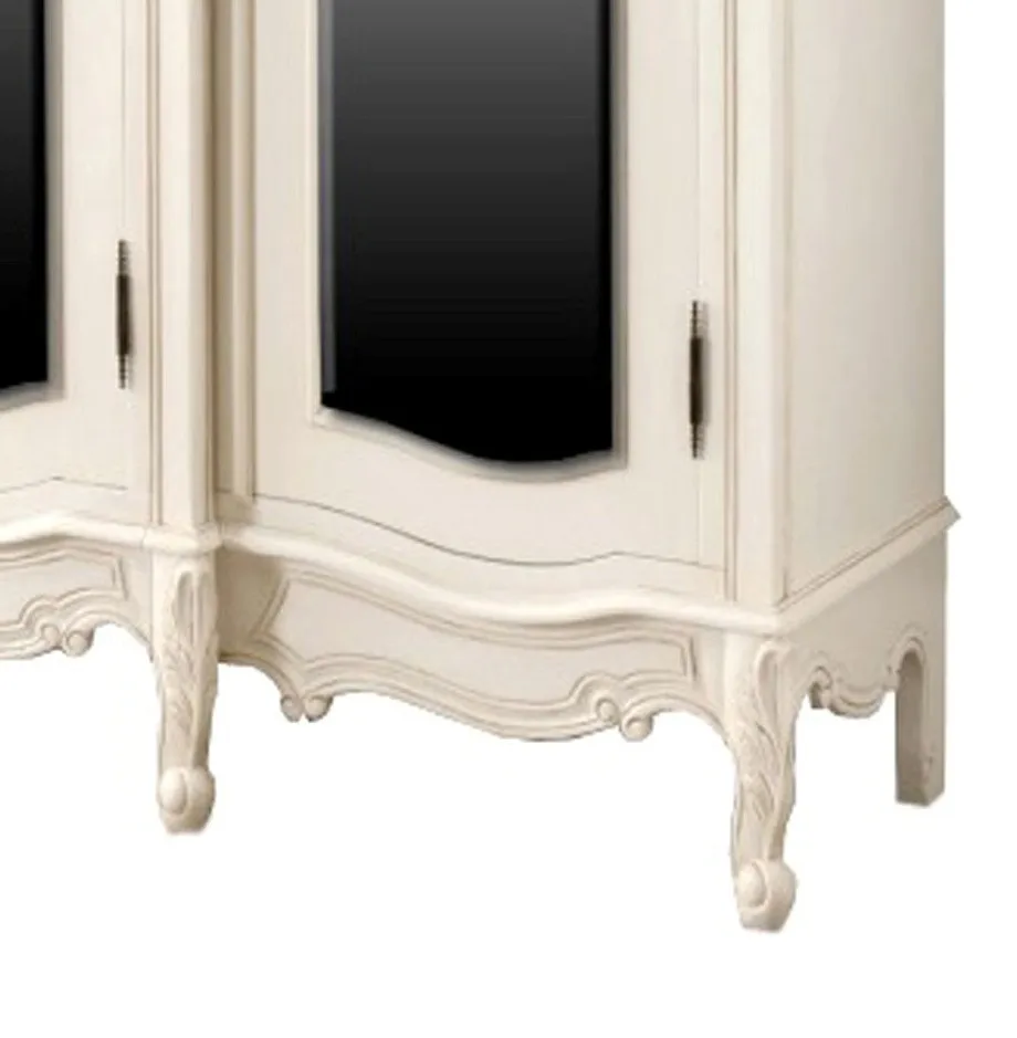 Antique French Wardrobe, every aspect hand carved from long lasting high quality mahogany, and completed in a stunning antique white finish. As one of our most popular ranges the La Rochelle collection ensures elegance and the utmost quality, and as seen here this Wardrobe displays smooth curves with intricate ornate design allowing you to achieve that perfect French boudoir or shabby chic feel. Whether by itself or as part of the full breath taking La Rochelle bedroom set, we guarantee you're going to be pleased.