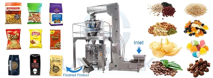 Для материалов, требующих высокой точности измерения или тщательной обработки, например, с напылением пищи, винта или лапши. Доступны различные типы сумок, например, мешок, стоячий мешок, черпак, мешок для задней запечатывания, 3 или 4 стороны мешок запечатывания, связывая мешки, и т. д.