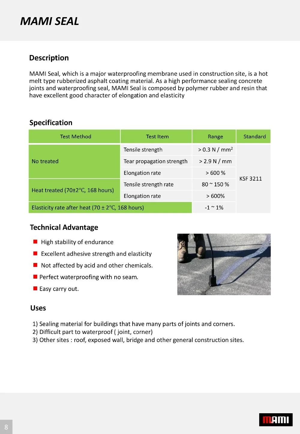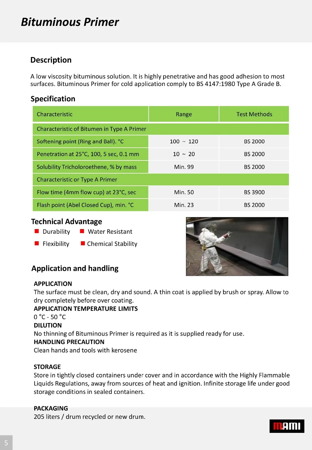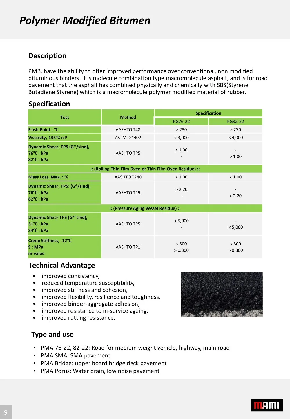 A material that is durable, water-resistant, flexible and chemically stable. It is widely used as an anti-slip compound in the piling industry, for sound-dampening felts and for electrical cable protection. It is also used in the manufacture of bituminous mastic for oil and gas pipeline joints. It comes in various grades such as Grade 85/25, 85/40, 115/15, and 10/20.