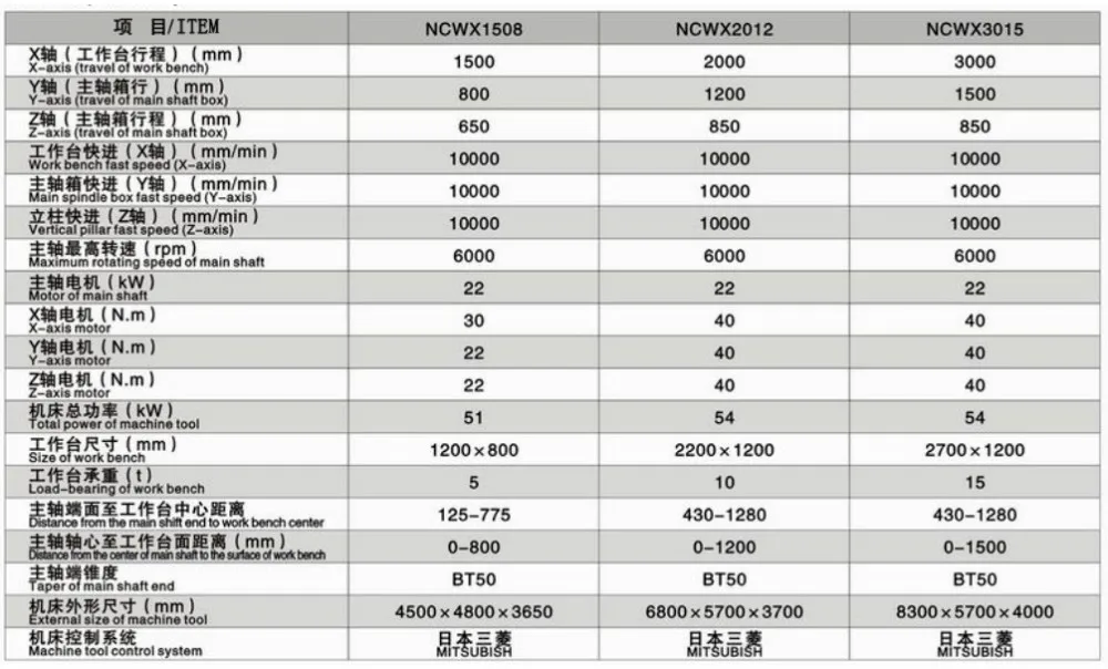 NCWX series horizontal milling machine is the horizontal machine developed by the technical personnel of our company, equipped with advanced numerical control system and integrates milling processing and boring holes and is widely used in mold and manufacturing industry.