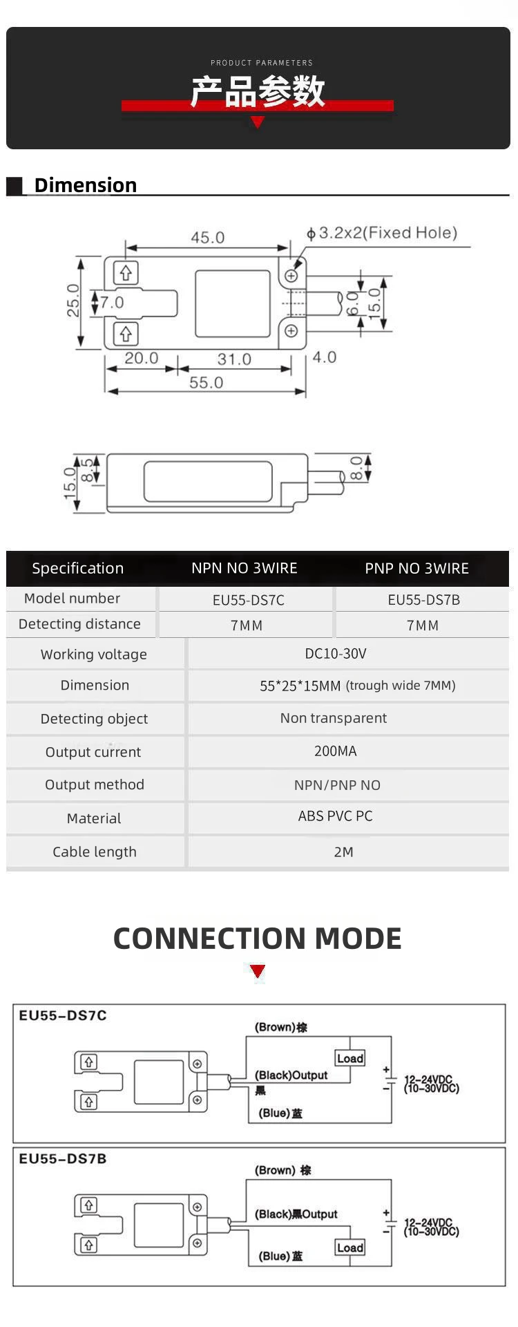 SENSOR Model | EU55-DS7C | Trough wide | 7mm | |