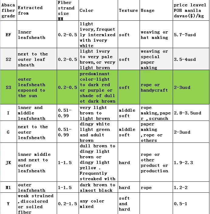 S3 abaca fiber hemp fiber usage matress philippine fiber product abaca paper pulp production material