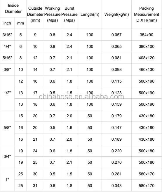Application | Widely used for conveying water,oil,weak chemical and other liquid under low pressure condition in foodstuff,sanitary,industry, agriculture and aquatic animals equipment etc. |