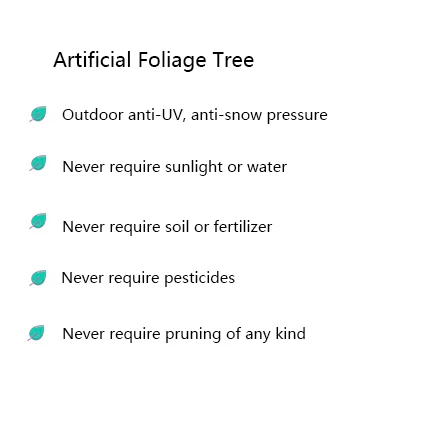 Feature | Artistic,Environmental,Durable,Evergreen,Nontoxic,Wind resistance,Anti-UV |