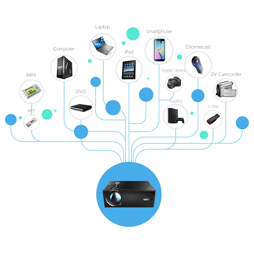 RICH MULTIMEDIA PORTS: Equipped with a variety of inputs, support HDMI/USB/VGA(PC)/Composite AV/Headphone. This projector can support laptops, smartphones, tablets, USB drives, DVD players, Netflix, YouTube and others.
