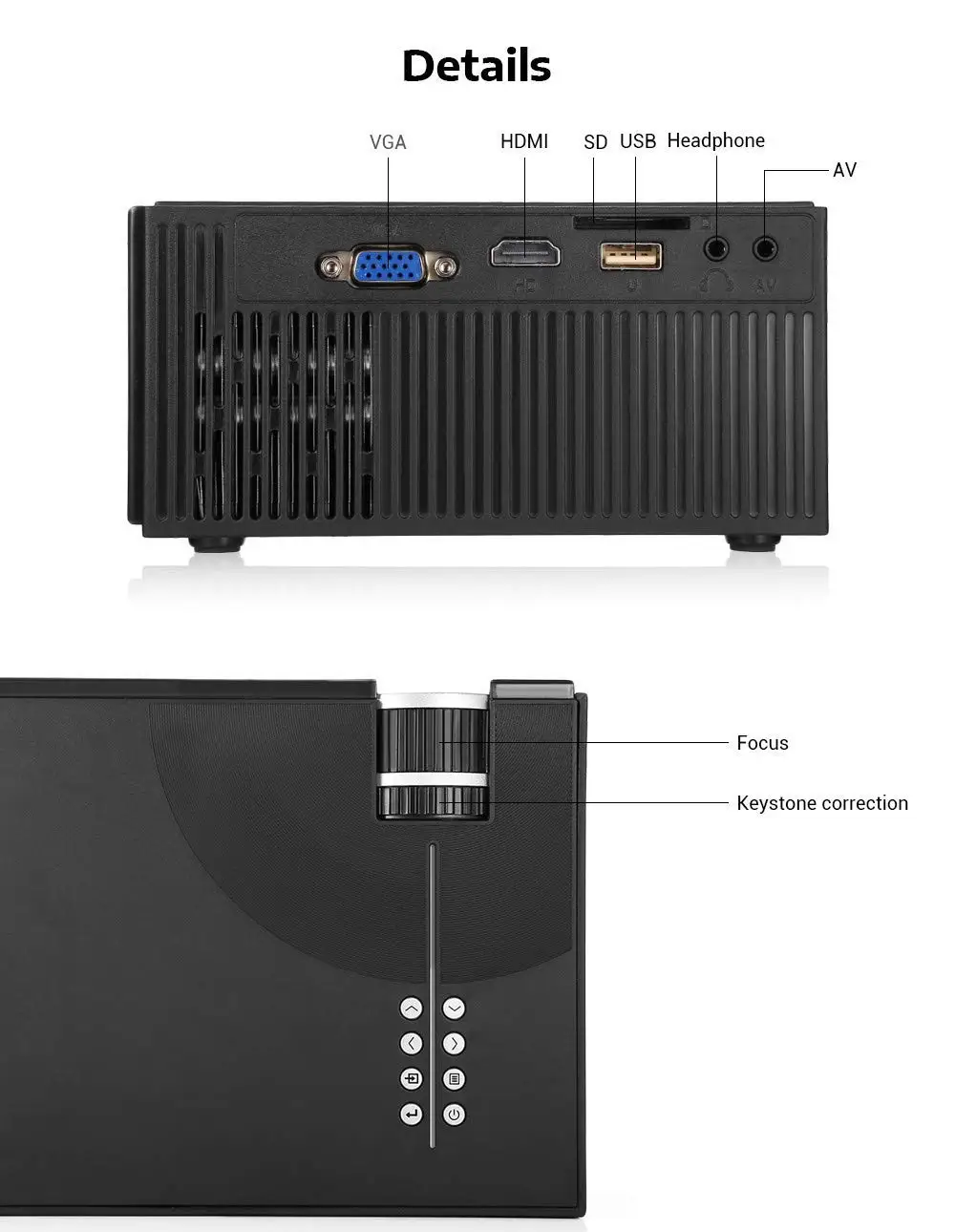Input: AV, VGA, USB, TF, HDMI