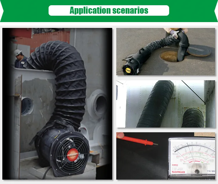 With our matching explosive-proof flexible ventilation duct, the explosion proof portable ventilation /exhaust fan 8" is mainly used in many spots with inflammable and explosive gas for ventilation, such as chemical industry, metallurgy, spinning, petroleum, oil ship and mine.