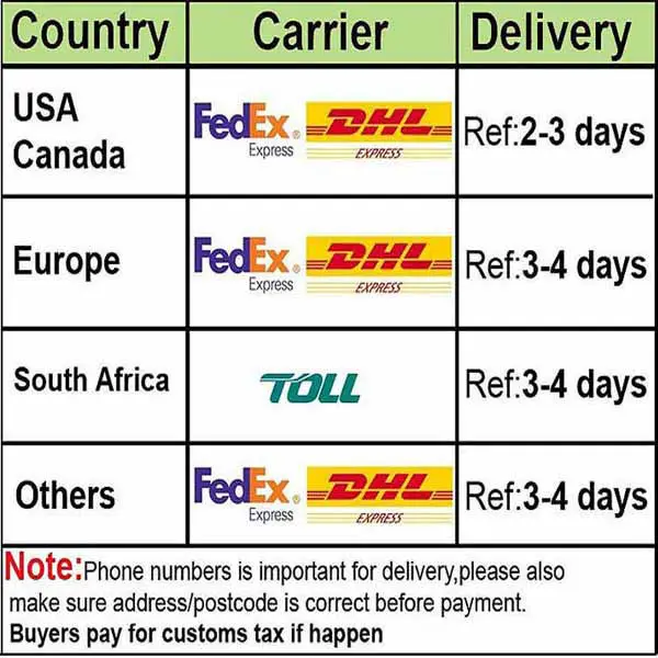 1.International Express for Mini order,DHL/UPS/FEDEX,etc. Arrive within 2-5 days;