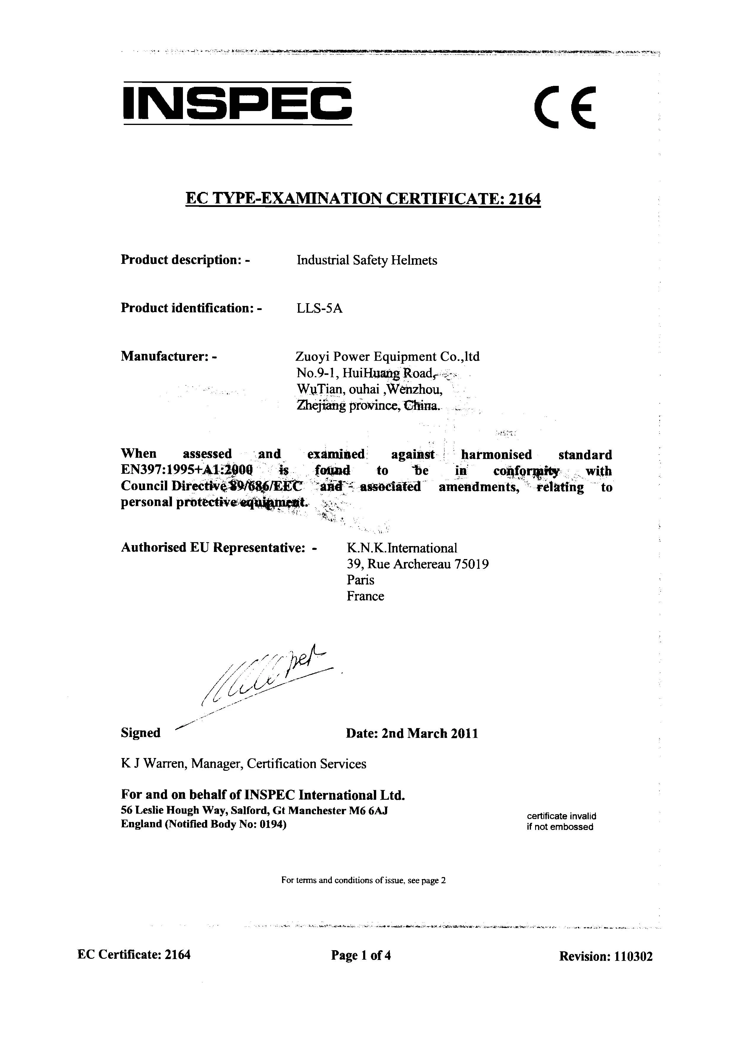 Standard | EN:397:2012 |