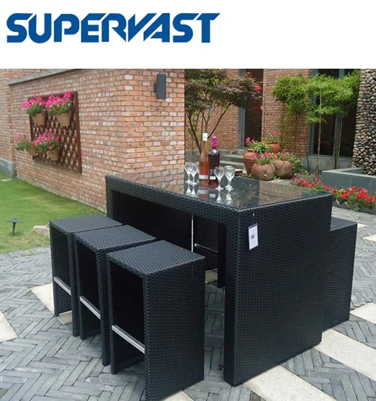 Create a peaceful haven in all four seasons with this vibrant 7 PC Outdoor Risin Wicker High Dining Bar Table set. The 7 PC Outdoor Risin Wicker High Dining Bar Table set can be used for both, indoor and outdoor use. Modern and stylish lines, this chair offers comfortable and exceptionally stunning by pool side. It has a modern style that enhances the look of the decor. Made from steel, the frame of this chair provides durability and sturdiness. The risin wicker material is waterproof and dry by natural sun,also have vairous color available. This chair is available in an exquisite black with Golden Dot finish that adds to its overall style-quotient. Chair can be easily cleaned using a soft dry cloth. This ensures easy maintenance and keeps it looking good for a long time.