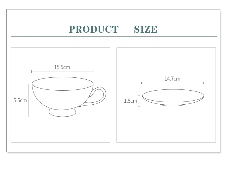 | Size | Cup: 10.5cm H:5.5cm C:200ml Saucer : dia:16cn H: 2cm |