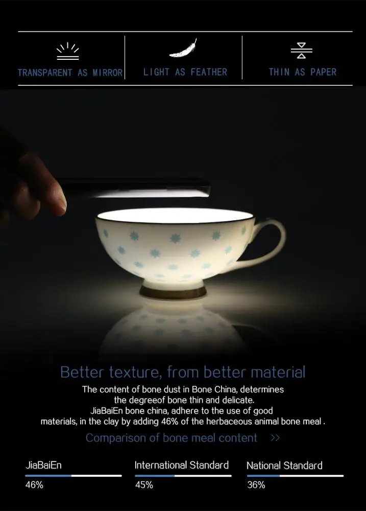 Material | Fine Bone china, Bone ash contains 46% |