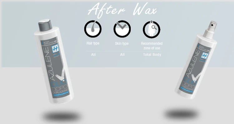 Azulene post-wax oil is non-greasy and nonstaining, is easily absorbed and gives the skin after hair removal a lasting velvety softness. Azulene is one of the main components of the essential oil of chamomile, famed for its antiinflammatory and soothing effects on allergy rashes. The Azulene oil can be used to remove any wax residues and provide an intense, lasting clean, fresh, sensation.