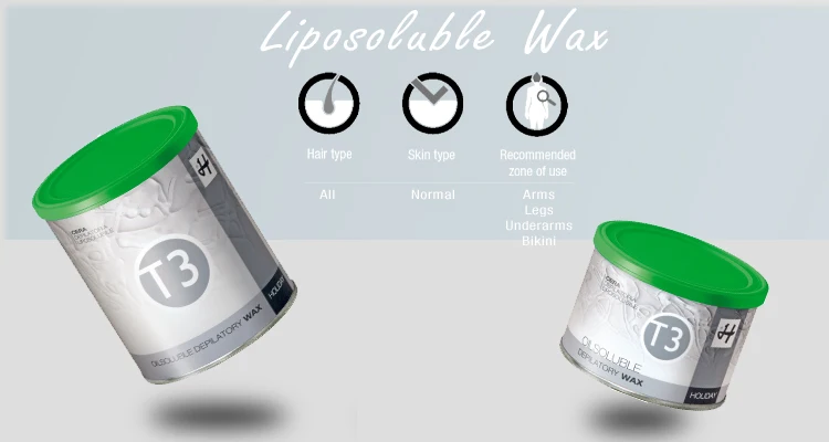 The T3 line was created by combining two of the finest natural resins used for the development of hair removal waxes: this product’s key characteristics are choice quality raw materials, excellent spreading coverage and gentle removal. Suitable for all skin types, it is effective against even the most stubborn hairs. It is green in colour.