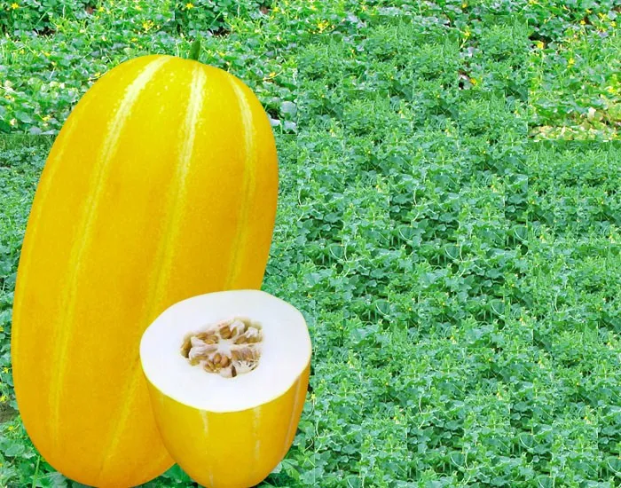 1. Early mature sweet melon variety. 2. Oval shape fruit, yellow skin with white groove. 3. High yield, white flesh. Unit weight 1-2kg. Sugar degree 15-17. Not easy dehiscent.