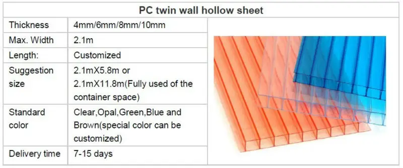 PC twin-wall hollow sheet | Length: 5800