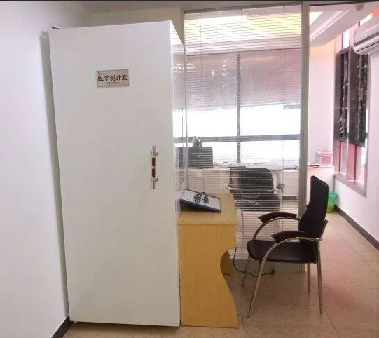 Mobile audiometric booth is a small-size steel integrated room that dedicated for hearing aid fitting mechanism, it has scroll whell, so it’s convenient to move. Applicable For small and medium size of hearing aid fitting mechanism.
