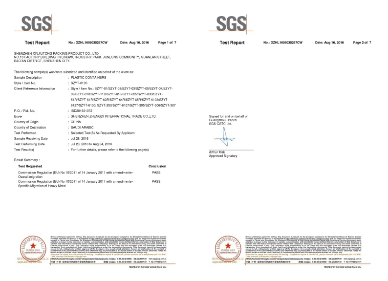 5) Food Grade Packaging Container with Security Certificate