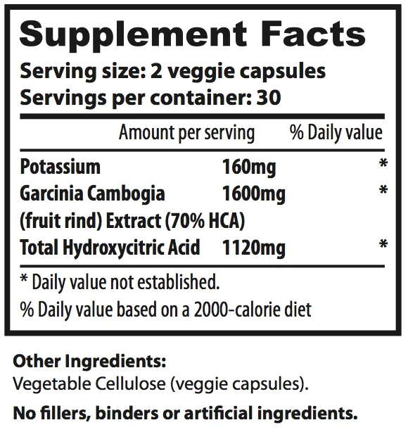 Garcinia Cambogia 800 mg 70% HCA, 60 ct - Vegetarian Capsules