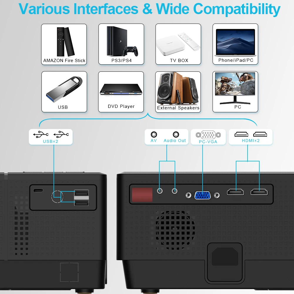 4) High brightness: 4000 lumens, for movie&office&education