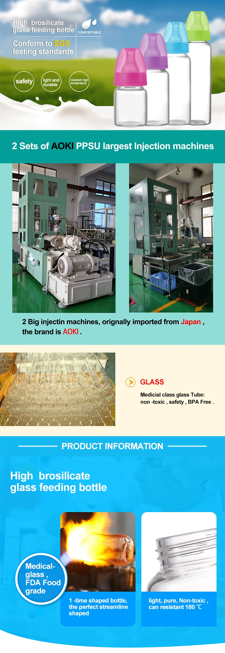 Material Feature: | 1.BPA free,clear and easy to clean. 2.Bottle is made of neutral material , encounter acid alkali will not release toxic substances. 3.Nipple use ultra soft silicone, thickness is twice that of an ordinary pacifier. 4.food-grade silicone nipple,Comply with European N14350-2 safety inspection standards. 5.Conforms to EN71. |