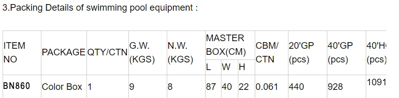 2.Specifications of swimming pool equipment :