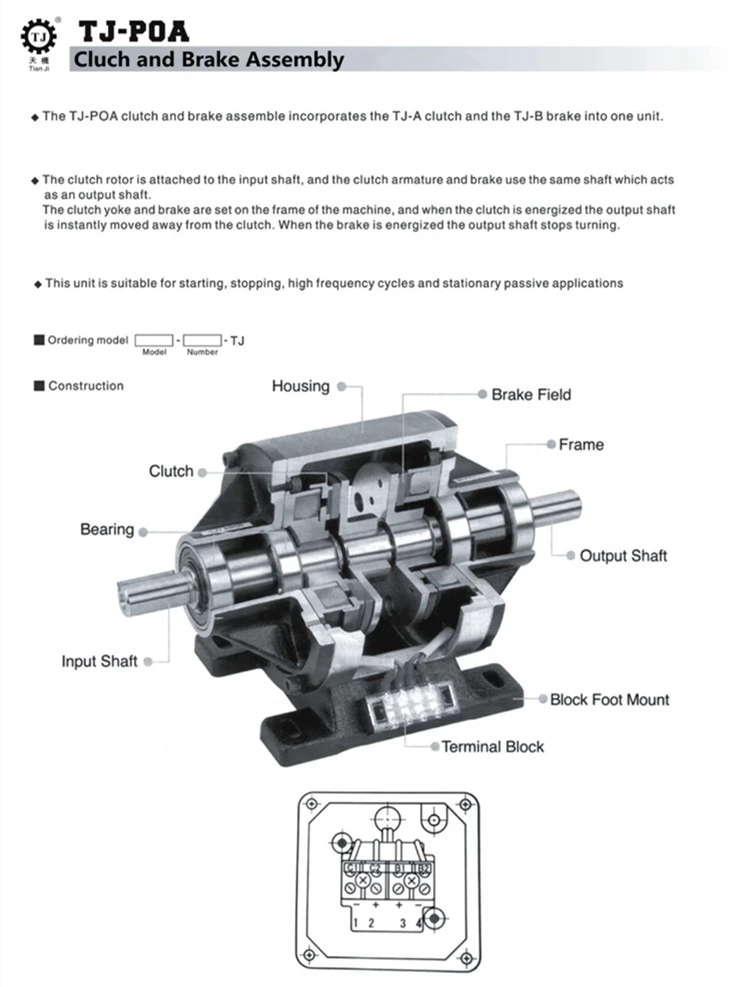 Electromagnetic brake clutch group called the electromagnetic clutch brake assembly, mainly composed of A TJ - type A electromagnetic clutch and A combination of TJ - B2 type electromagnetic brake integration group. Roughly divided into exposed, capacitor, double electromagnetic clutch, electromagnetic clutch brake double/single flange etc. Above each of the electromagnetic clutch brake set of internal and external device is slightly different, but they all have A common characteristic: wide application, simple structure, high frequency operation, use safety, etc. Cat brand electromagnetic clutch brake set of packaging machinery, moon cake machine, bread machine, wire and cable equipment, textile machinery, food machinery, electronic equipment, super Acoustic machinery and other mechanical field is one of the common equipment.