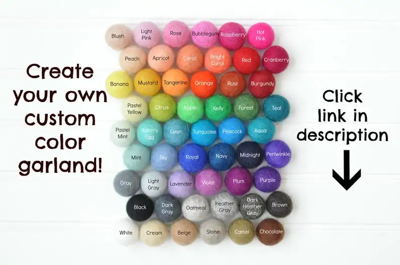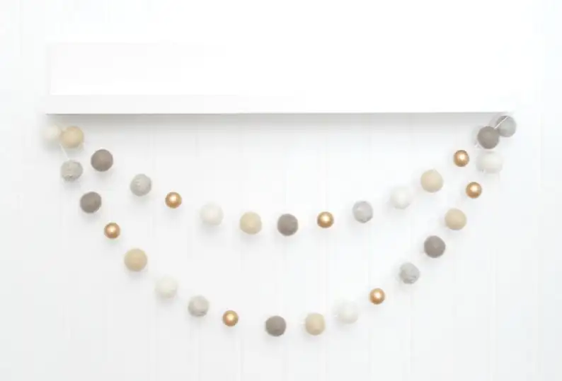 6 feet,spaced = 24 felt balls, 7 gold beads | ||