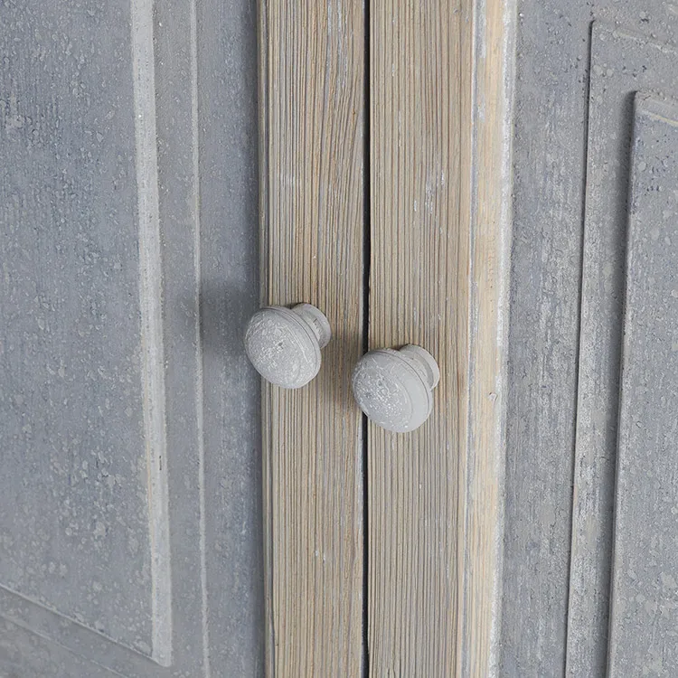 Norwegian Rustic Style Living Room Furniture Dark Blue Recycled Pine Wood Showcase Antique Wooden Display Cabinet
