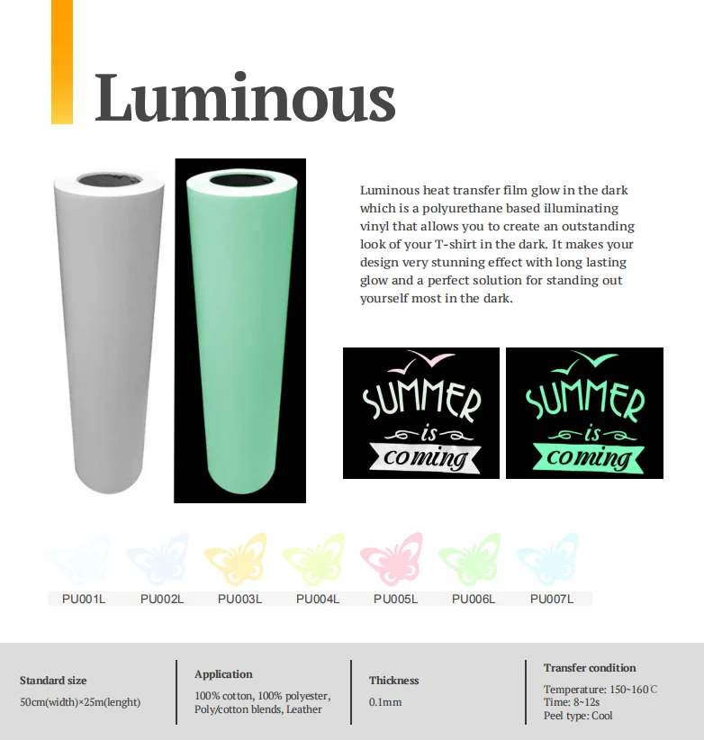 Luminous heat transfer vinyl