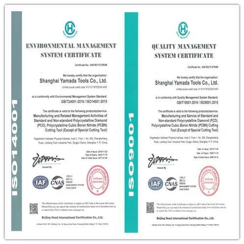 Shanghai Yamada Tools CO., LTD is a professional manufacturer of super hard precision PCD and PCBN cutting tool of high and new technology enterprise. Founded in 2001,located in Shanghai, China, Shanghai Yamada Tools has passed ISO9001:2015quality management system certification and ISO14001:2015 environmental management system certification. Main products include all kinds of standard and non-standard polycrystalline diamond (PCD) and polycrystalline cubic boron nitride (PCBN) machine processing cutting tool, such as milling tools,drilling tools, turning tools, reaming tools,boring tools, PCD and PCBN inserts,etc. Widely used in auto parts,auto engines,aerospace and military industries. With ERP management system and CAD auxiliary design, advanced production equipment & inspection equipment and imported high-quality raw and auxiliary materials such as composite plate and grinding wheel, according to the different needs of customers, Shanghai Yamada Tools provides customers with high quality products. We will be adhering to the concept of "Super hard quality dedicated service" , creating value for customers, to contribute to the revitalization of the cutting tool industry in China.