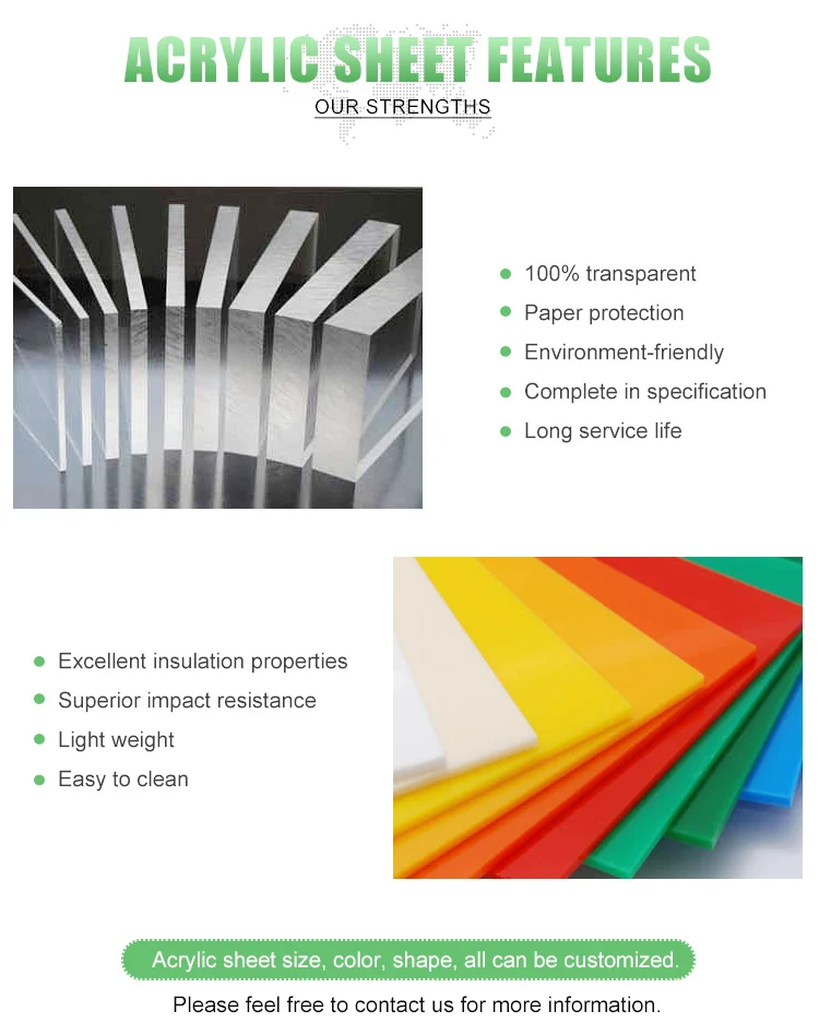 Feature | Excellent Transparency, weather resistance, process ability is good, Non-toxic, waterproof, eco-friend, easy to clean, color rich. |