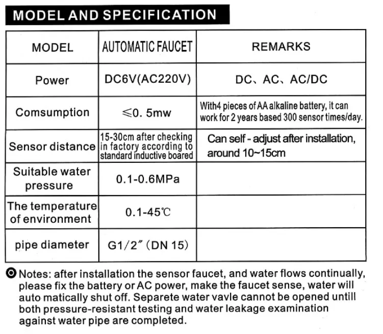 Intelligent power saving | four No.5 alkaline batteries are used for DC products, with static current ≤ 60 μ a |