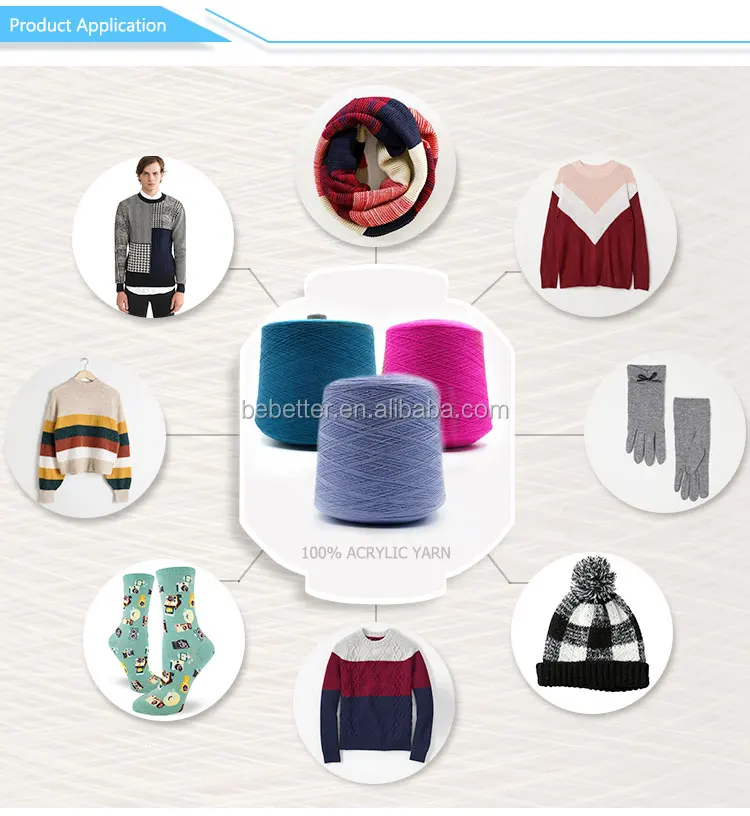 Our Solid Acrylic Yarn has various knitting patterns, but mostly used for knitting garments like coats, sweaters. It can also used for knitting hats, socks and so on.