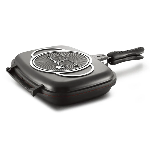 32cm induction double sided grill pan /double handle fry pan with non stick marble coating