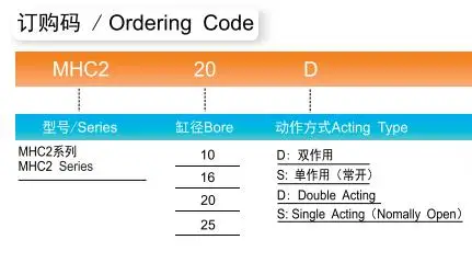 1. MHC2 series standard type angular style air gripper,with bore size from φ10 to φ25mm