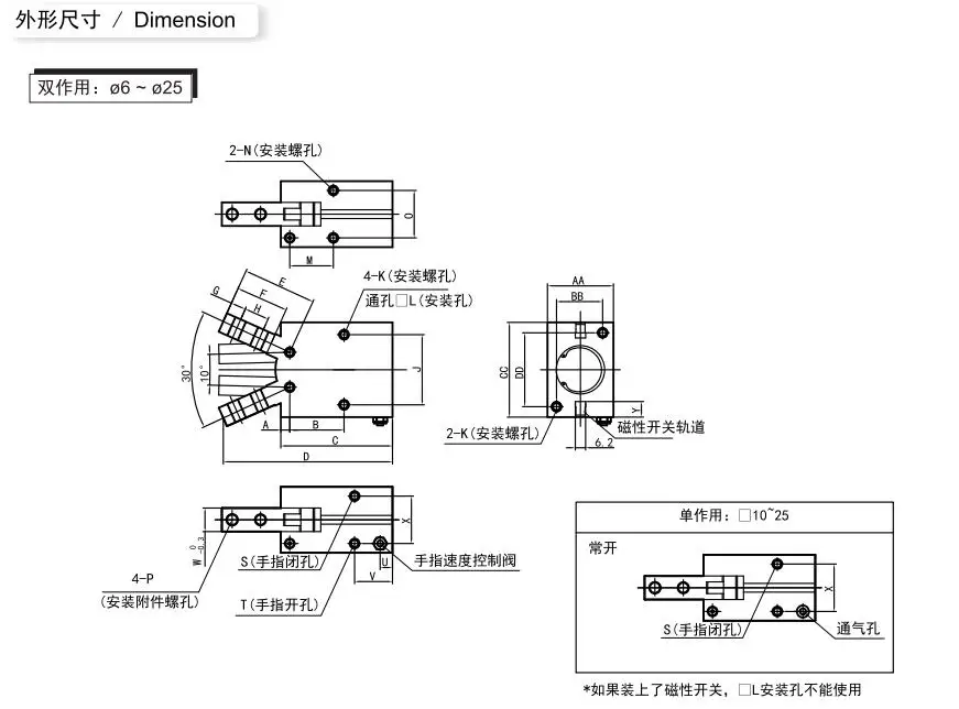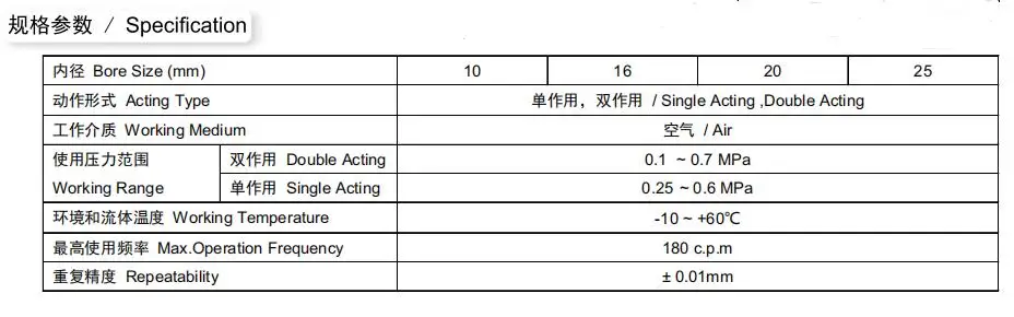 2. Double piston structure, compact design, and a large amount of gripping force is provided;