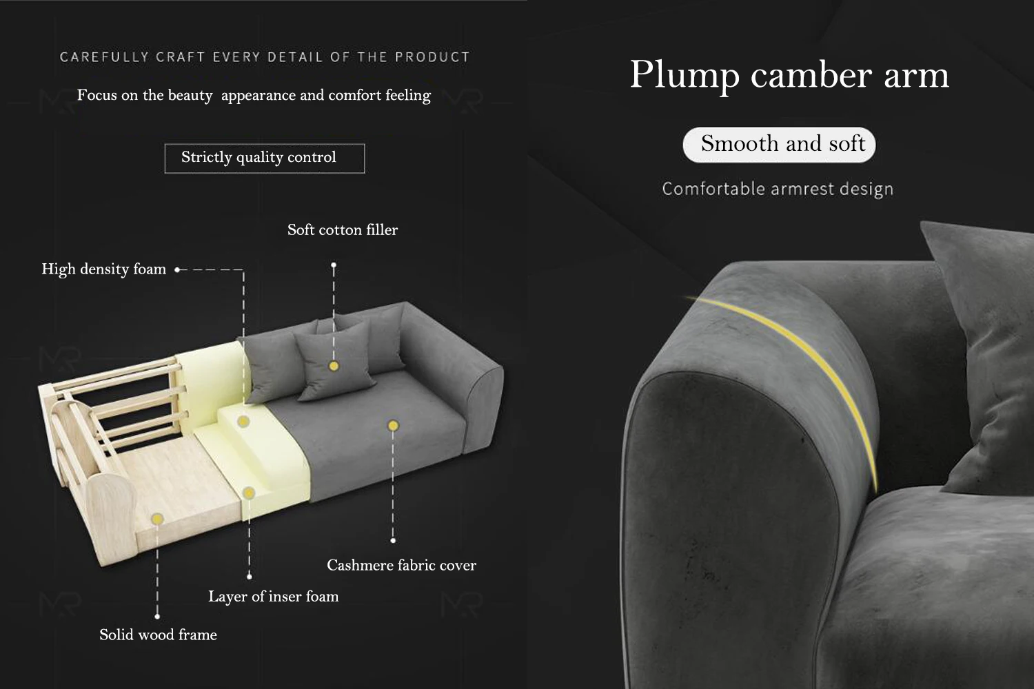 Texture | Metal frame+50kgs high density foam+Cashmere fabric | Place of Product | Guangdong Province,China |