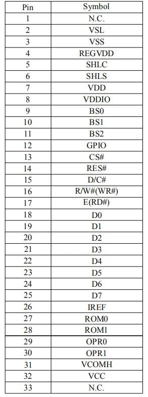Pin Assignment(2.26" oled.Pins:33P)