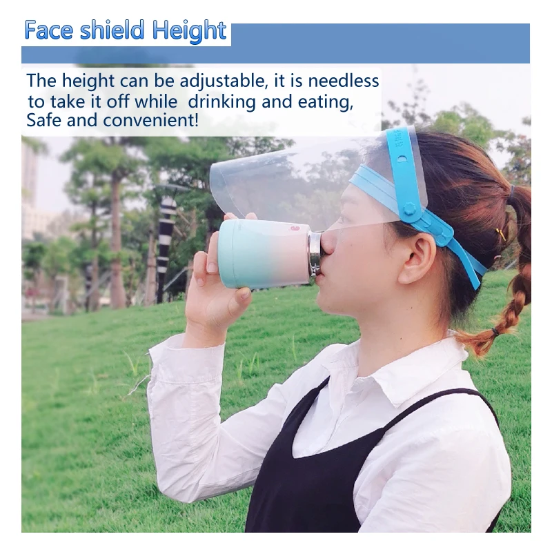 1. Clear Anti-fog PET disposable splash face shield.After wearing the shield cover,pull the silicone locking adjusting belt backwards to lock automatically on a appropriate position .It can be worn stably,with no loosening or sliding when bending over and bowing head 2.The Clear Anti-fog PET disposable splash face shield is designed with ergonomics principles ,with comfortable wearing feeling and no head compression. 3.The Clear Anti-fog PET disposable splash face shield has large protective area and good effect.The protective range can reach the entire face. 4.The buckle design can adjust the height freely, with safe and convenient feeling. 5.The shield cover is easy to disassemble.It can be replaced when it is damaged