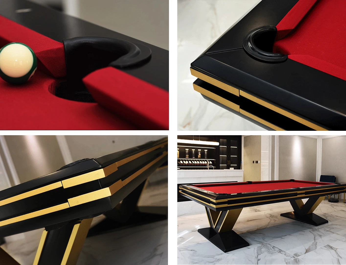 Accessories: | 1 set Aramith balls, 2 high quality cues, 1 cue rack, 1 long rest cue, 1 cross head rest, 2 copper hooks, 1 scoreboard, 25 tips, 12 chalks, 2 gloves, 1 brush etc | |||||||