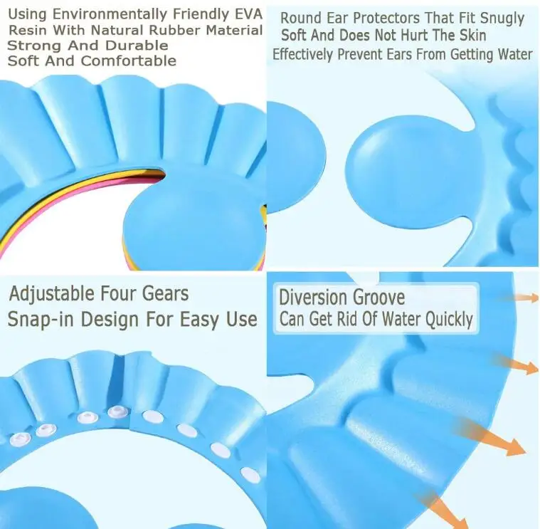 Wide application: The baby shower cap visor prevents shampoo and water from entering baby's ears, eyes or mouth, helps eliminate your child's fear of water, making it easier for your child to bathe. It's a practical gift for new parents.