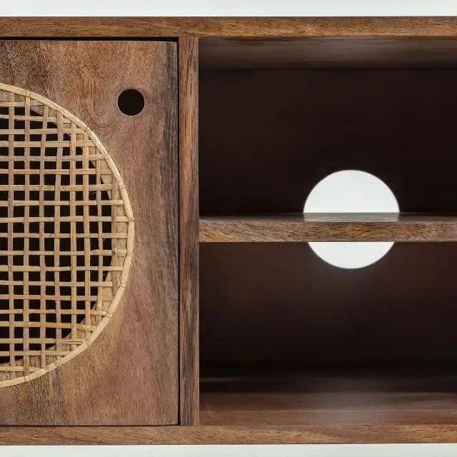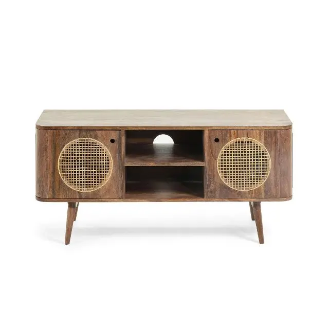 Grade Hotel Solid Mango Wood TV Cabinet Nordic Rattan Living Room Furniture Tv Stand Cabinet