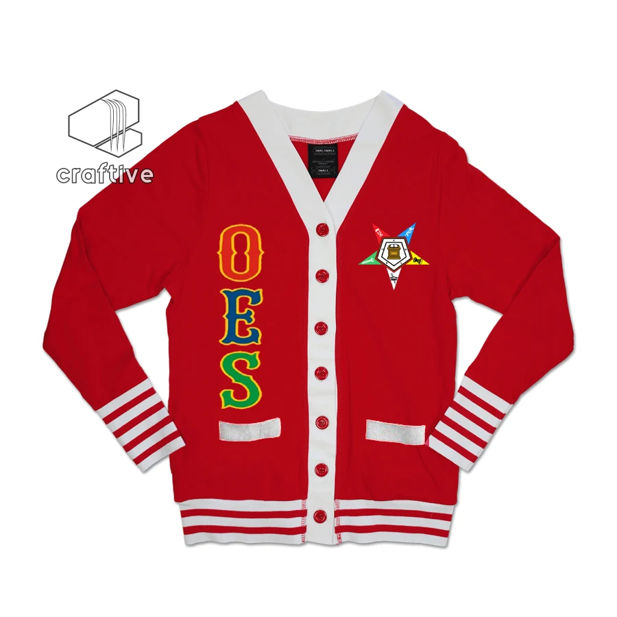 Order of The Eastern Star OES Cardigan sweater is made of light weight and High quality cotton material with your OES Stitched Greek Letters. These sweaters are highly detailed and are made of a high quality fabric. Get yours before they're all gone. New with tags.
