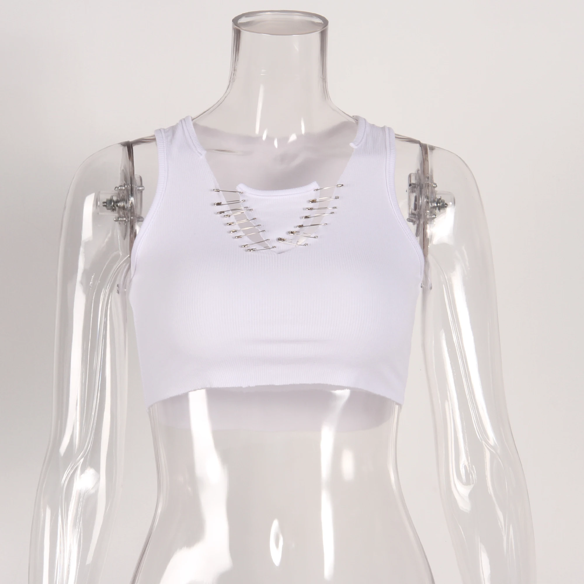8517 майка женская одежда для фитнеса Женская однотонная ребристая укороченная белая пикантная Клубная одежда с вырезами на пуговицах модная одежда для женщин