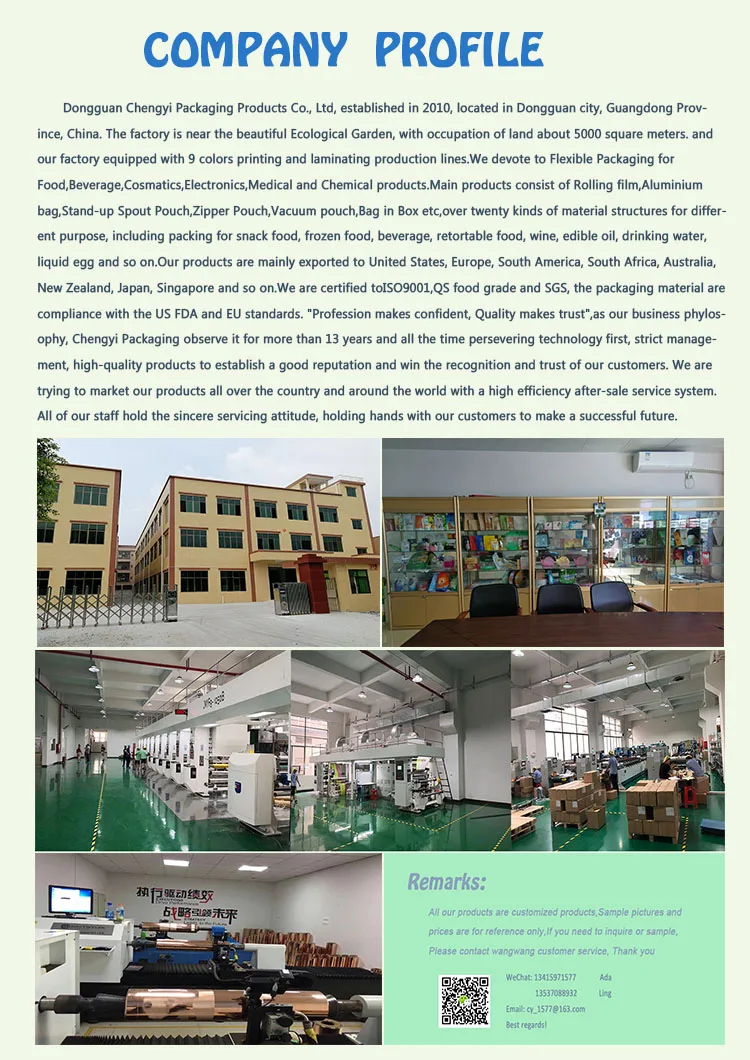 | Material | PET/AL/PA/RCPP PET/PE OPP/CPP Customized | |